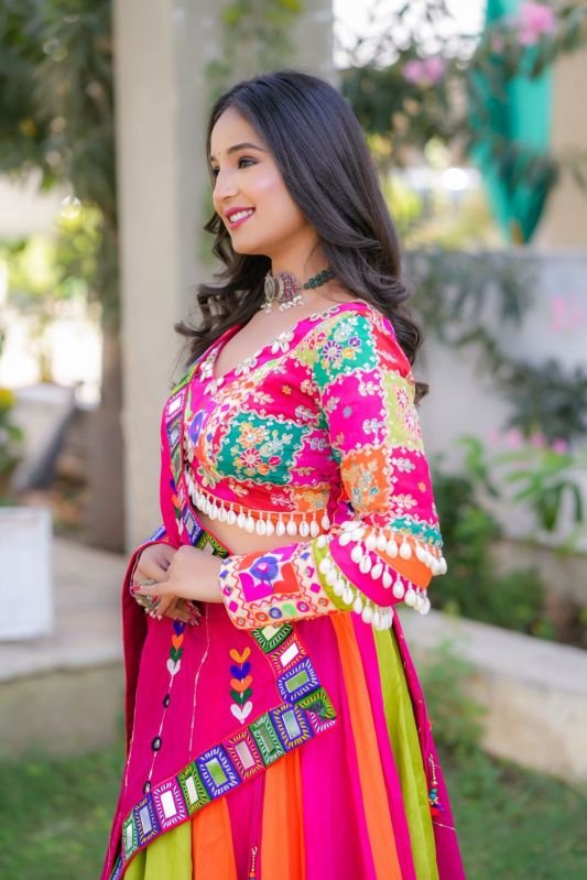 Home › Ethnic Elegance › Navratri Special Collection › Women's Multi Color Navratri Mirror Work Lehenga Choli
